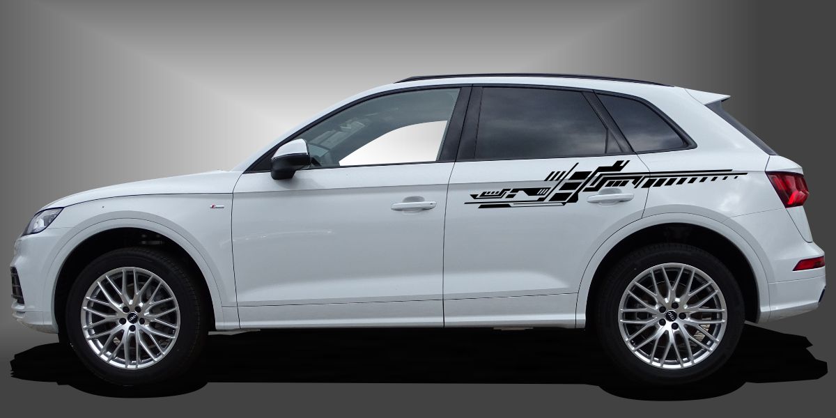 Das Design Auto Designs passt besonders zu Fahrzeugen mit flachen oder leicht gewölbten Seitenflächen. Dank der modularen Struktur lässt sich das Motiv flexibel positionieren.