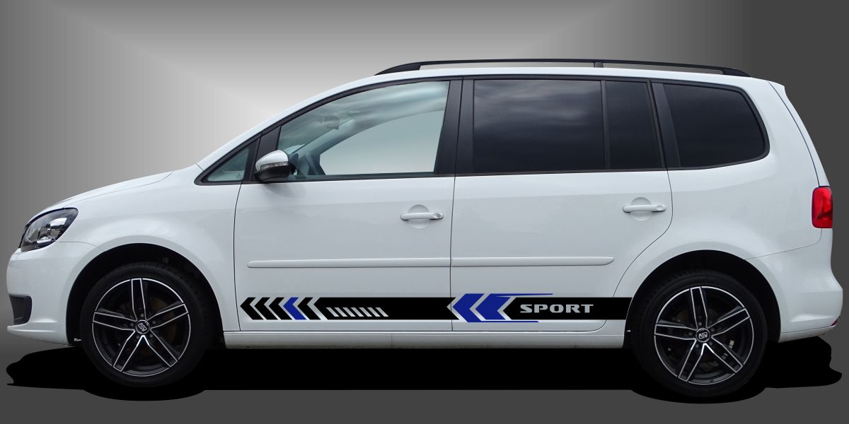Das Design Autodekor Streifen passt besonders zu Fahrzeugen mit flachen oder leicht gewölbten Seitenflächen. Dank der modularen Struktur lässt sich das Motiv flexibel positionieren.