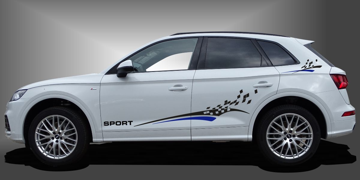 Das Design Autodekore passt besonders zu Fahrzeugen mit flachen oder leicht gewölbten Seitenflächen. Dank der modularen Struktur lässt sich das Motiv flexibel positionieren.