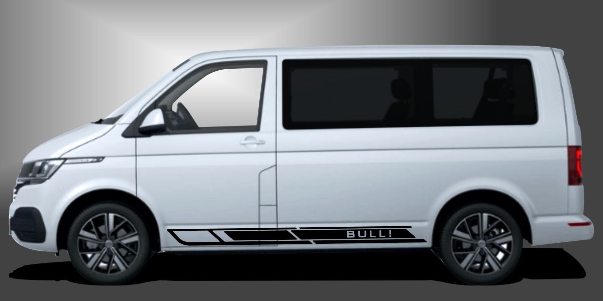 Das Design Bulli Aufkleber passt besonders zu Fahrzeugen mit flachen oder leicht gewölbten Seitenflächen. Dank der modularen Struktur lässt sich das Motiv flexibel positionieren.
