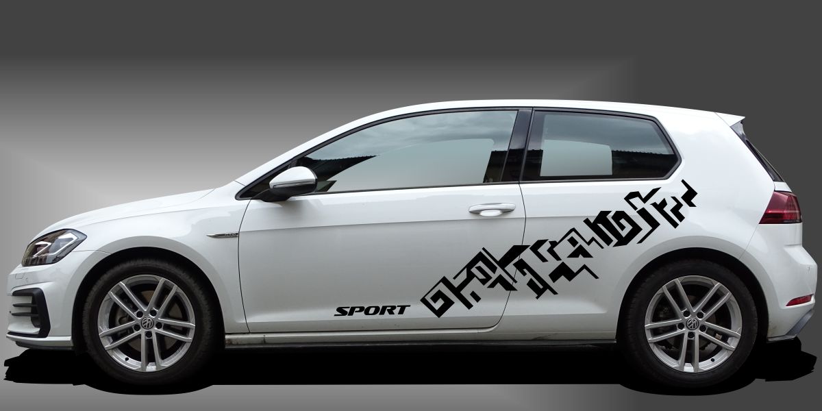 Das Design Car Sticker Car Design passt besonders zu Fahrzeugen mit flachen oder leicht gewölbten Seitenflächen. Dank der modularen Struktur lässt sich das Motiv flexibel positionieren.