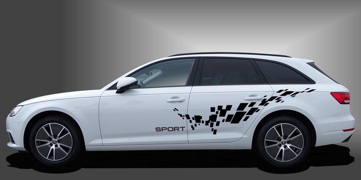 Das Design Racing Stickers passt besonders zu Fahrzeugen mit flachen oder leicht gewölbten Seitenflächen. Dank der modularen Struktur lässt sich das Motiv flexibel positionieren.