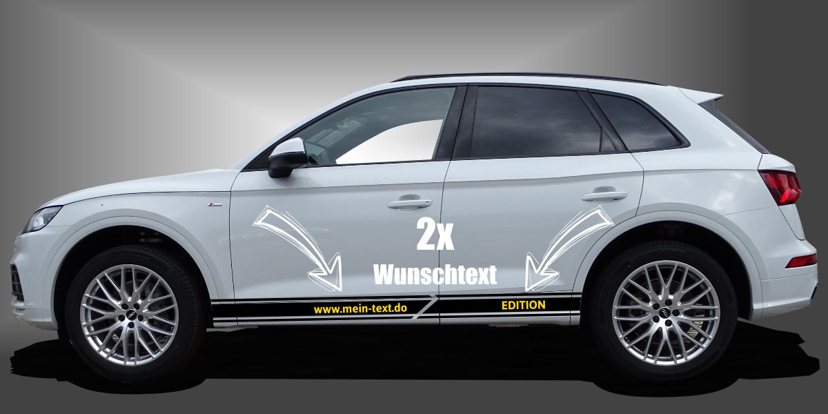 Der Streifen am Auto ist ein attraktiver Seitenstreifen für SUVs, der dem Fahrzeug ein faszinierendes und unverwechselbares Styling im Design verleiht. Dieses Sticker-Set eignet sich für den Mini-SUV als auch für den Kompakt-SUV gleichermaßen. Der große Vorteil gegenüber vielen anderen Standard-Aufklebern ist die individuelle Personalisierung nach Wunsch und die Ersatzteil-Garantie.