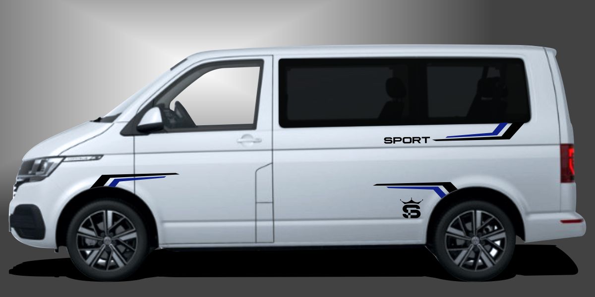 Das Design VW Bus Tuning passt besonders zu Fahrzeugen mit flachen oder leicht gewölbten Seitenflächen. Dank der modularen Struktur lässt sich das Motiv flexibel positionieren.